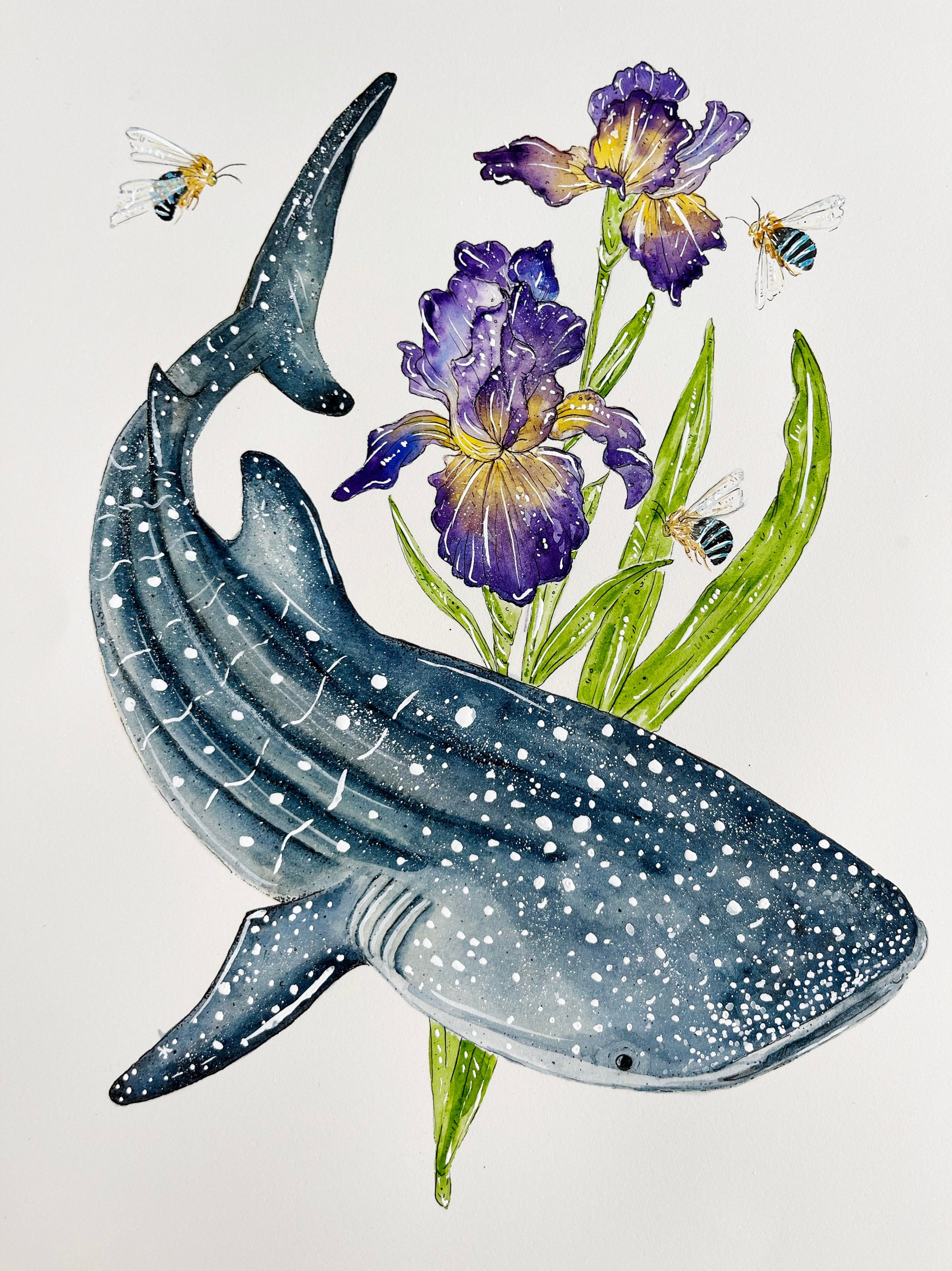 'Depths of Wisdom' Whaleshark & Iris | Original Watercolour Artwork